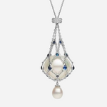 Naszyjnik lavalier z perłą i kamieniami szlachetnymi – Pleciona stalowa siatka z perłami słodkowodnymi