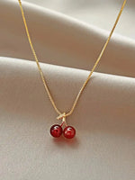 Naszyjnik z Wiśniami z Czerwoną Zawieszką – Złoty Łańcuszek