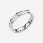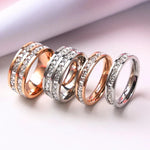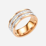 Pierścionek Cyrkonia Ten luksusowy pierścionek ze stali nierdzewnej jest pokryty różowym złotem i ozdobiony lśniącymi kamieniami cyrkonii w podwójnym kwadratowym wzorze. Romantyczna biżuteria, która łączy siłę z pięknem – idealna na zaręczyny, ślub lub wyjątkowe...