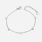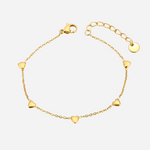 Delikatna i minimalistyczna bransoletka z małymi serduszkami, które nadają Twojemu stylowi romantyczny akcent. Wykonana ze stali nierdzewnej z pozłacaniem 18K (kilka warstw dla lepszej trwałości koloru). Łatwa do stylizacji – idealna na co dzień, jako prezent lub do noszenia warstwowo z ulubionymi bransoletkami.